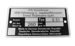 Tabliczka znamionowa ramy org ifa simson s51e nowa