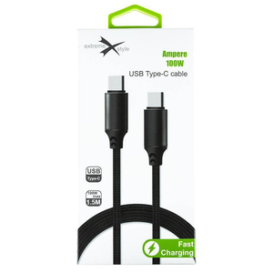 Wzmocniony kabel Ampere USB typ-C - USB typ-C 100W eXtremestyle 1.5m czarny