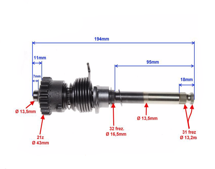 Wałek startera przeznaczony do silników 139FMD, 147FMD motorowerów ROMET ZETKA 50, CRS, BARTON TZR, BENZER ASTON, GSR, XCROSS. Wałki dobrej jakości co jest podstawą dłuższego czasu eksploatacji.
