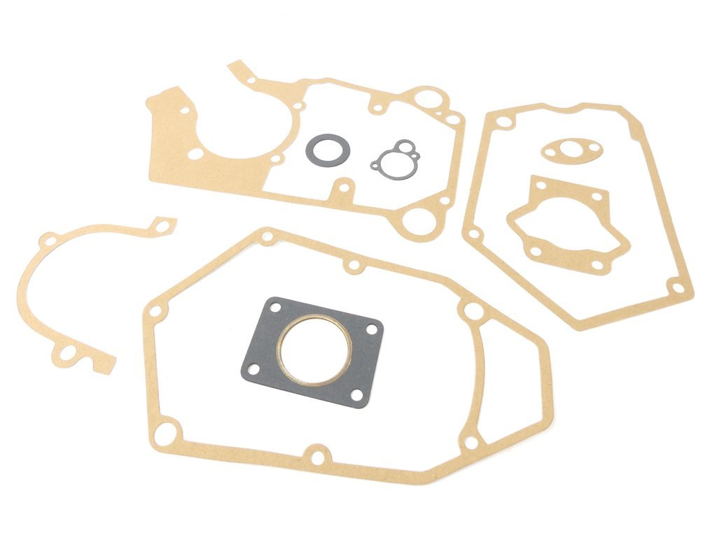 Uszczelki silnika przeznaczone do motorowerów marki ROMET z silnikiem "PROSTOKĄTNYM" 3 biegowym. Uszczelki wykonane są z mocnego materiału.