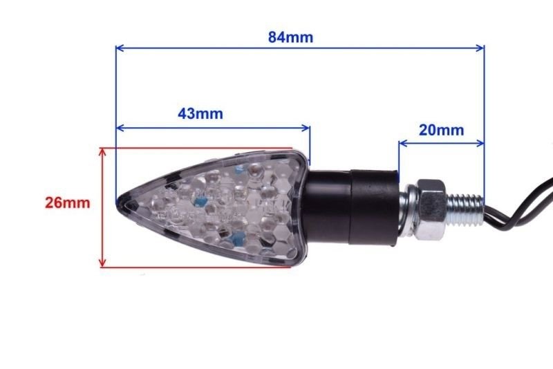 Kierunkowskazy ledowe (prawy i lewy) przeznaczone do motocykli, motorowerów, skuterów i quadów. W celu dopasowania kierunkowskazów należy się sugerować poniższymi parametrami oraz wymiarami. Kierunki bardzo dobrej jakości co jest podstawą dłuższego czasu eksploatacji.