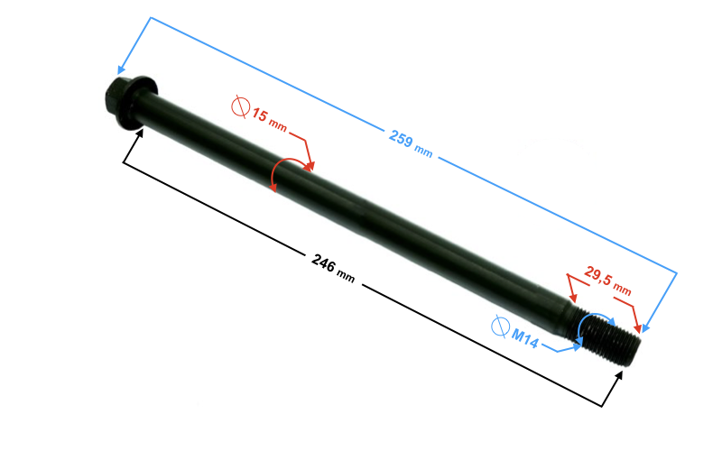 - całkowita długość osi: 259 mm