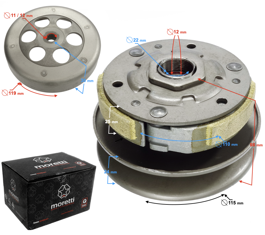Kompletne sprzęgło przeznaczone do skuterów 2T