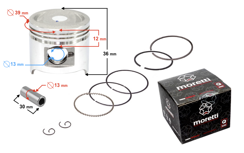 Tłok 50cc do motoroweru 4T. Produkt dobrej jakości marki Moretti.