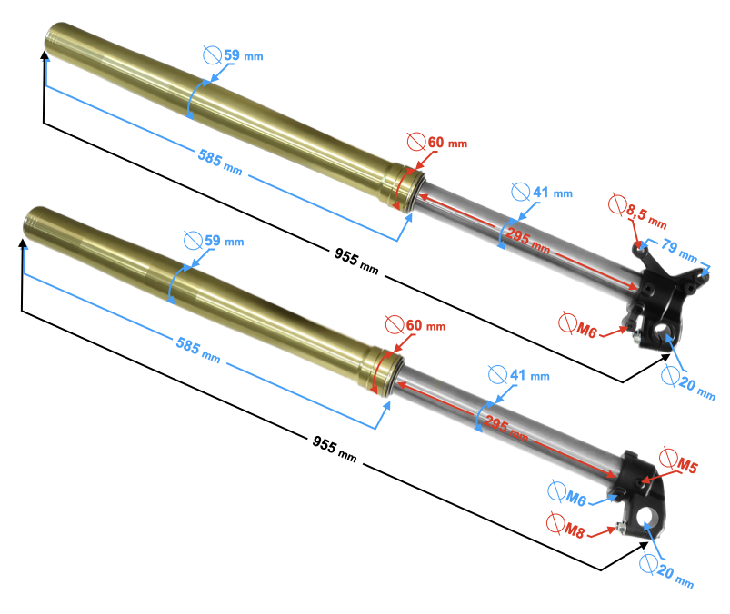długość całkowita amortyzatora: 955 mm