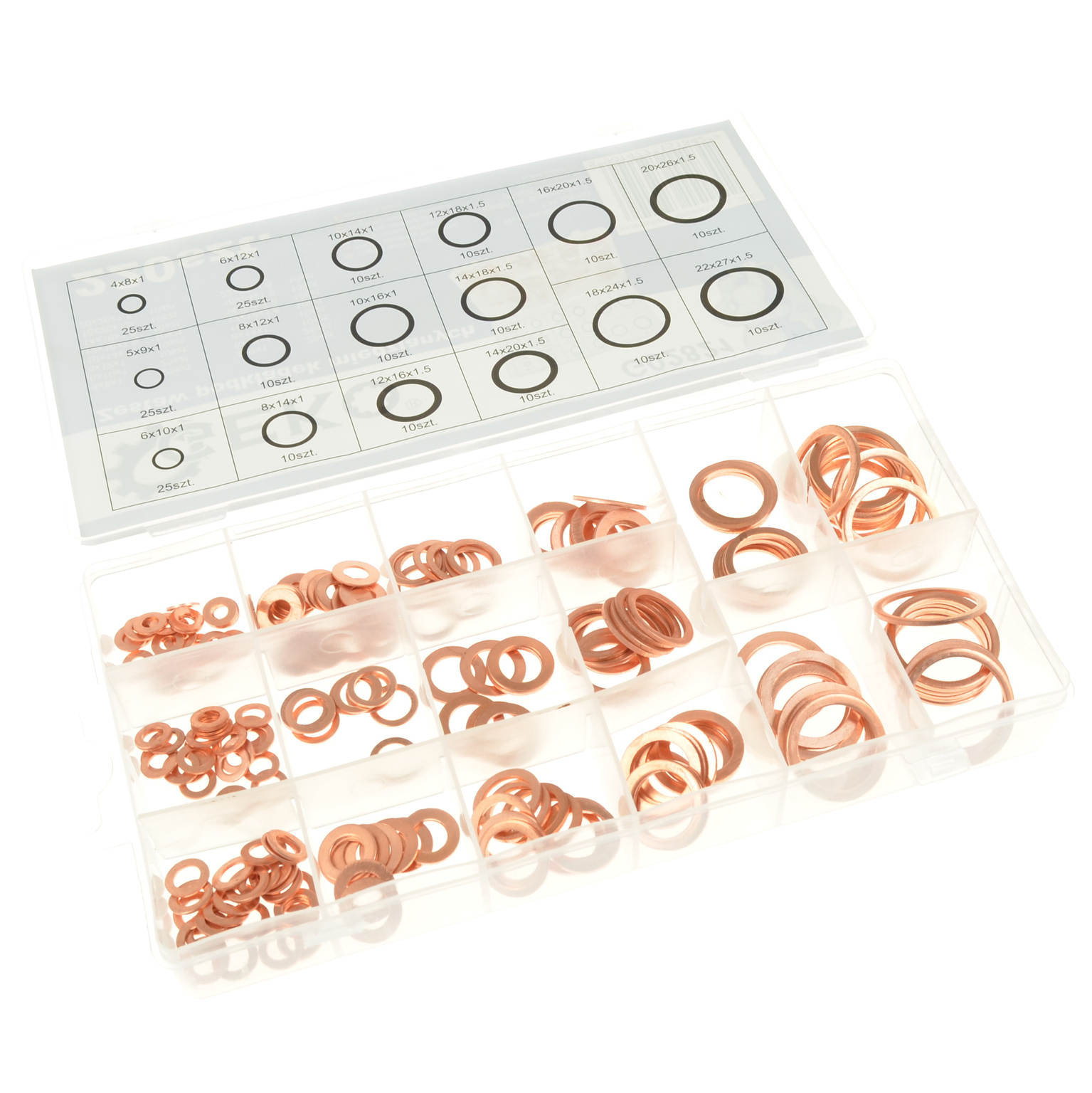 Zestaw podkładek miedzianych 16 rozmiarów 220szt.