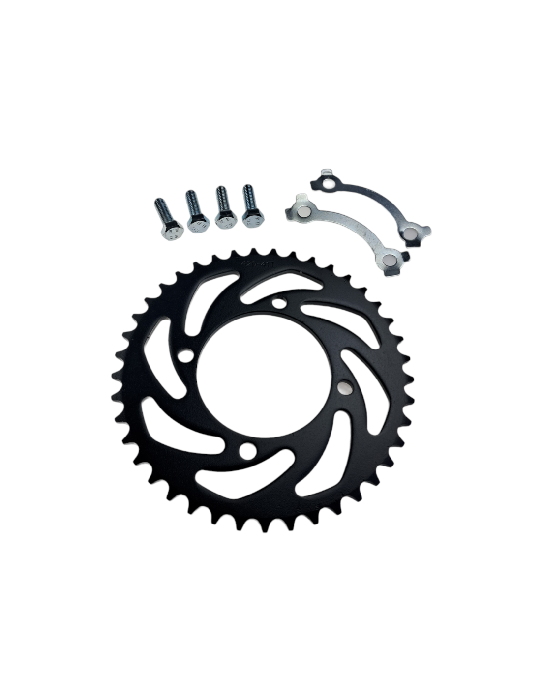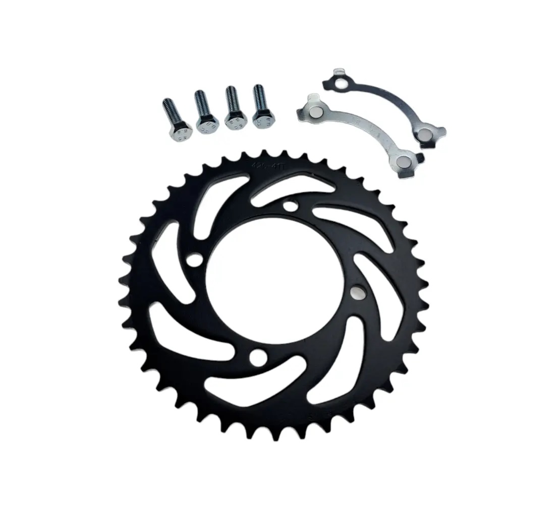 Zębatka tylna przeznaczona do napędu łańcucha 420. Wykonana z wysokiej jakości stali gwarantując dużą wytrzymałość. Zestaw zawiera śruby oraz zabezpieczenia.