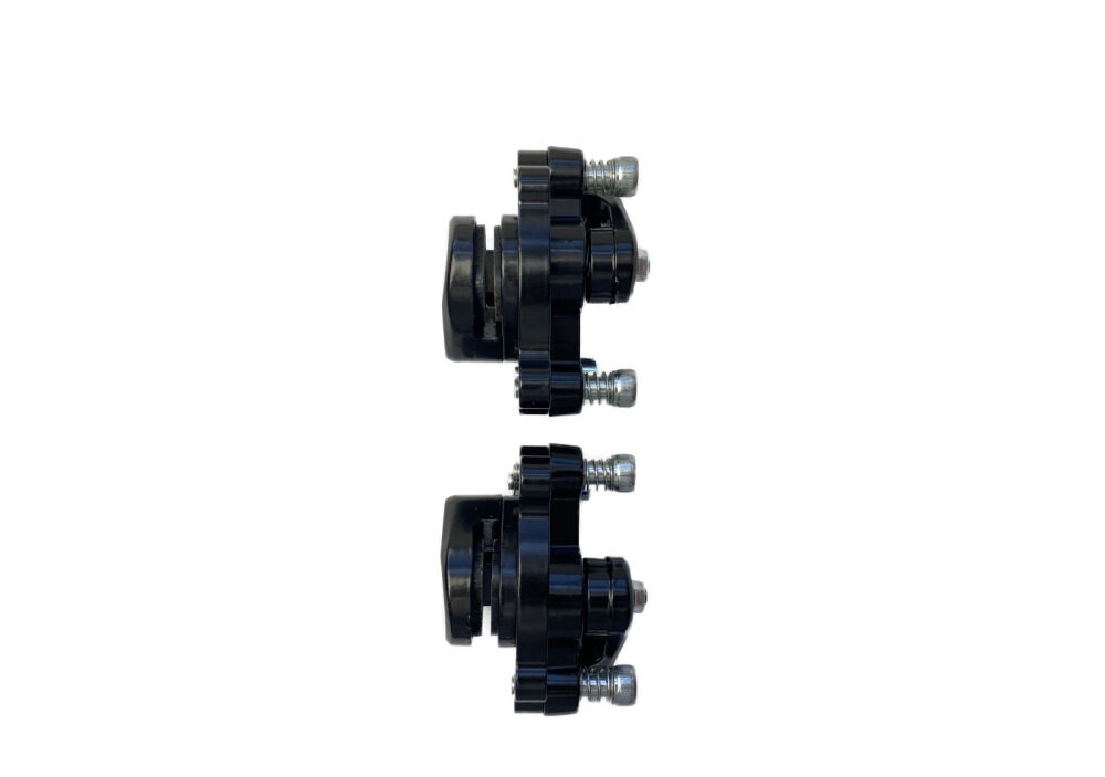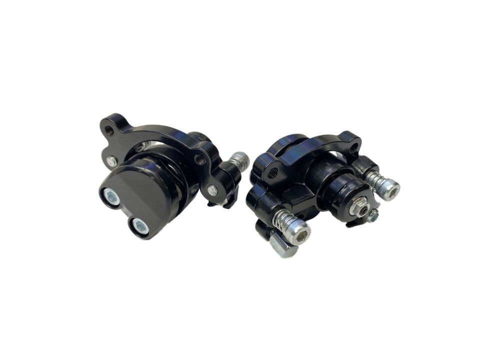 Komplet dwóch zacisków hamulcowych na przód oraz tył do pojazdów typu mini pocket bike.