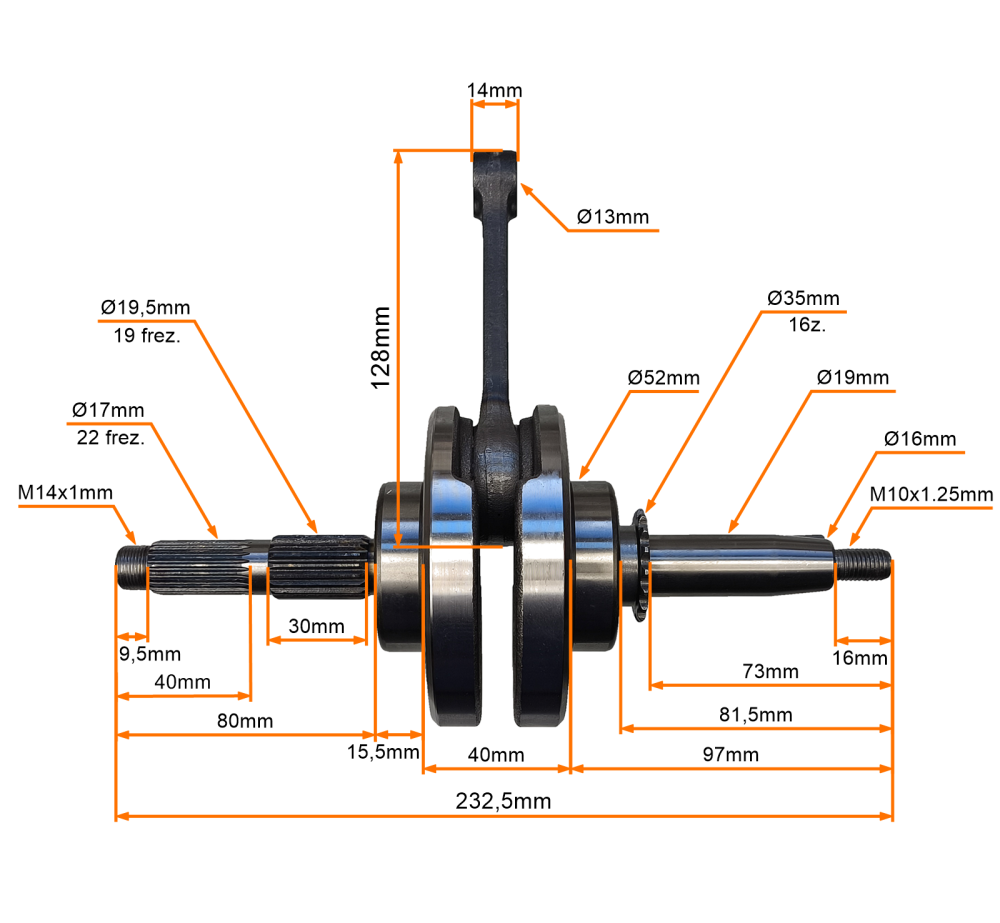 Długość całkowita wału: 232,5 mm