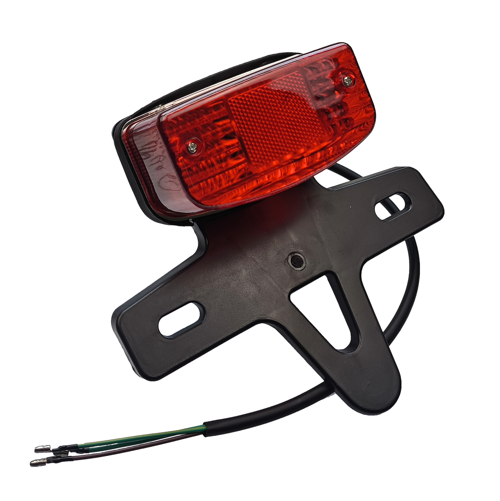 Uniwersalna lampa tylna wraz ze stelażem do skuterów i motocykli. Posiada światło postojowe oraz światło stopu. Produkt dobrej jakości.