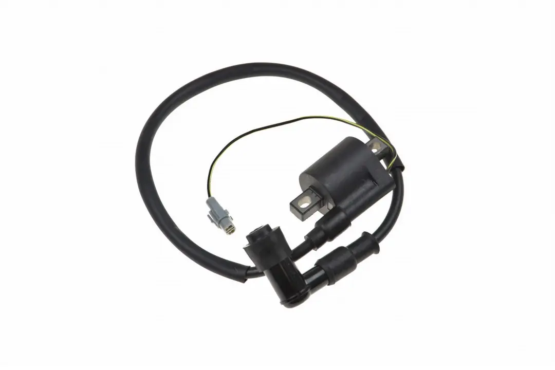 Oryginalna cewka zapłonowa z przewodem wysokiego napięcia oraz fajką marki KAYO. Przewód i fajka posiadają gumową osłonę, chroniącą przed przetarciem. Oplot koloru czarnego. Gwarantuje doskonałą pracę układu zapłonowego.