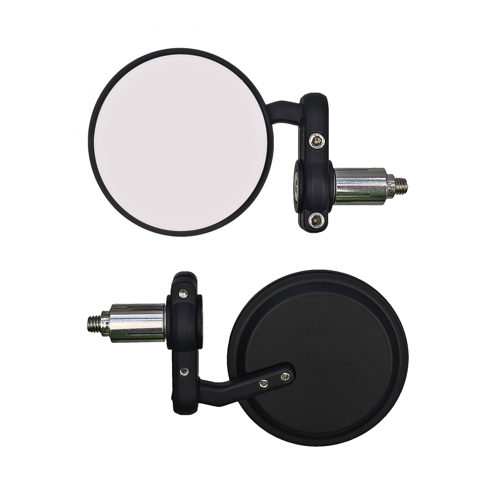 Nowoczesne lusterka kierownicy do motocykli, quadów i innego typu pojazdów. W zestawie kompletny montaż na końcówkę kierownicy z otworem 13/17mm oraz montaż klasyczny na kierownicę 22mm. Istnieje możliwość zamontowania lusterek w pozycji odwróconej.
