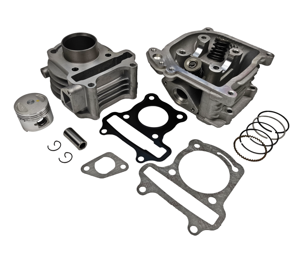Kompletny cylinder wykonany z bardzo dobrej jakości materiałów. W zestawie znajduje się tłok, pierścienie, sworzeń, zabezpieczenia oraz niezbędne uszczelki. Wykonanie gwarantuje długie i bezawaryjne użytkowanie. Głowica aluminiowa z kompletnymi zaworami, uszczelniaczami oraz sprężynami i wałkiem, wykonana z wysokiej jakości materiałów. Komplet idealnie nadaje się jako zamiennik oryginału.