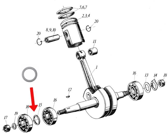 Podkładka dystansowa łożysk wału Romet Komar Motorynka