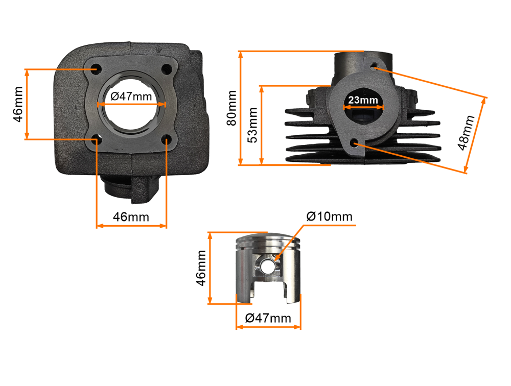 Kompletny cylinder wykonany z dobrej jakości materiałów. W zestawie znajduje się tłok, pierścienie, sworzeń, zabezpieczenia oraz niezbędne uszczelki. Wykonanie gwarantuje długie i bezawaryjne użytkowanie. Komplet idealnie nadaje się do jako zamiennik oryginału.