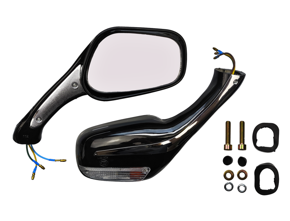 Kompletny zestaw lusterek z kierunkowskazem, razem z zestawem montażowym. Produkt dobrej jakości.