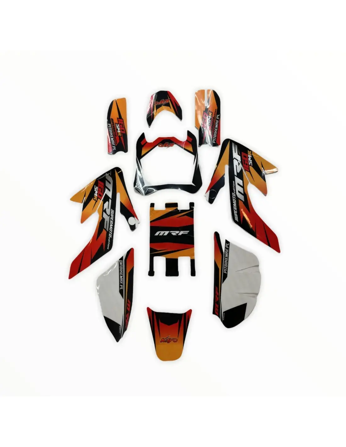 Okleina, komplet grafik przeznaczony do pitbike'ów MRF 160-R SM - malowanie 2020r. Produkt bardzo dobrej jakości.